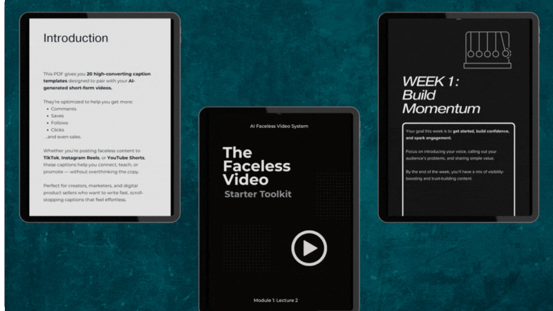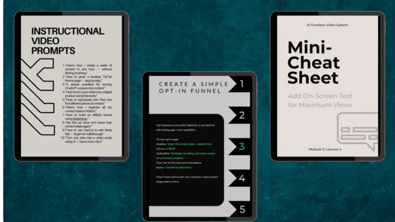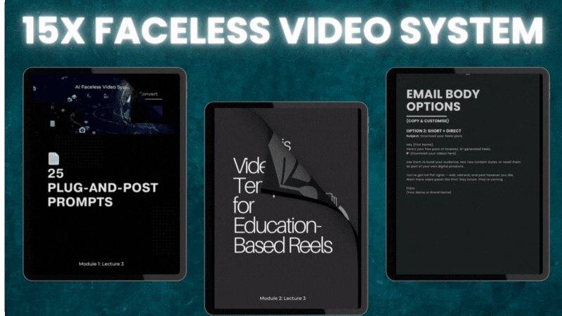7 Premium Bonuses: Full access to top-level courses, faceless content systems, viral templates, plug-and-play funnels, and high-converting email scripts.